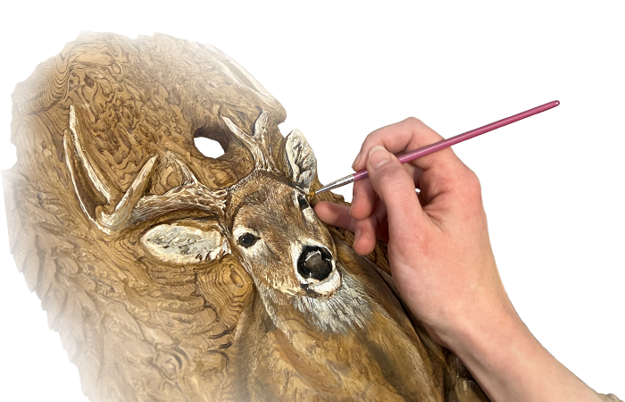 I find inspiration in both the majestic and the whimsical aspects of nature, as well as the day-to-day events of country living. From roughing out cedar carvings with my chainsaws, to detailing a watercolour painting with the finest microliner brushes, I love the process of creating new characters and designs out of raw materials.